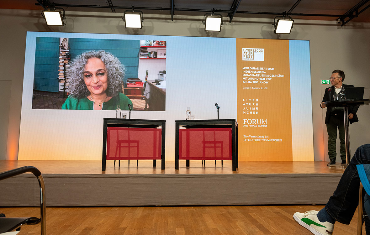 16.11.: Lukas Bärfuss im Gespräch mit Arundhati Roy beim FORUM © Catherina Hess
