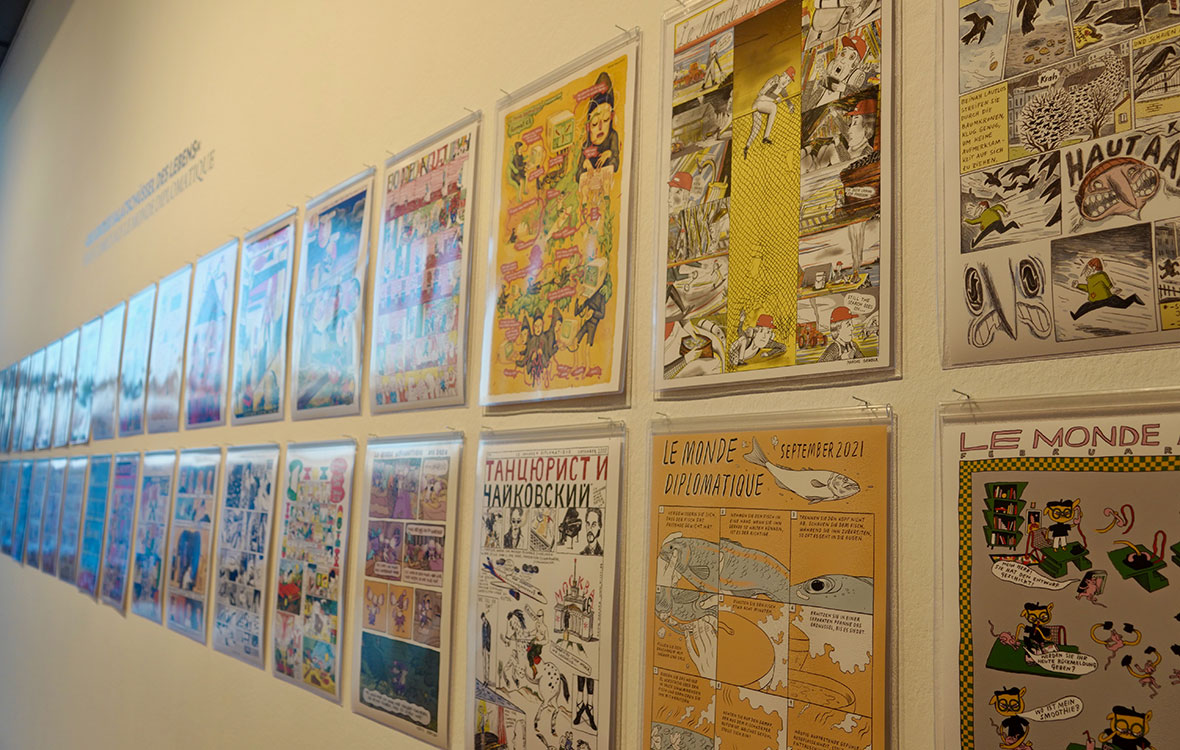 1./2.12.:Comicausstellung DIE GROSSE SALATSCHÜSSEL DES LEBENDS: Comics aus Le Monde Diplomatique im Literaturhaus München © Daniela Weiland